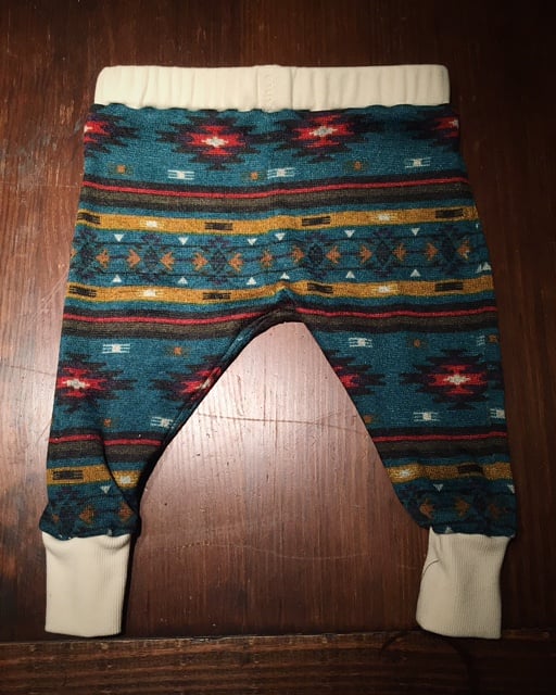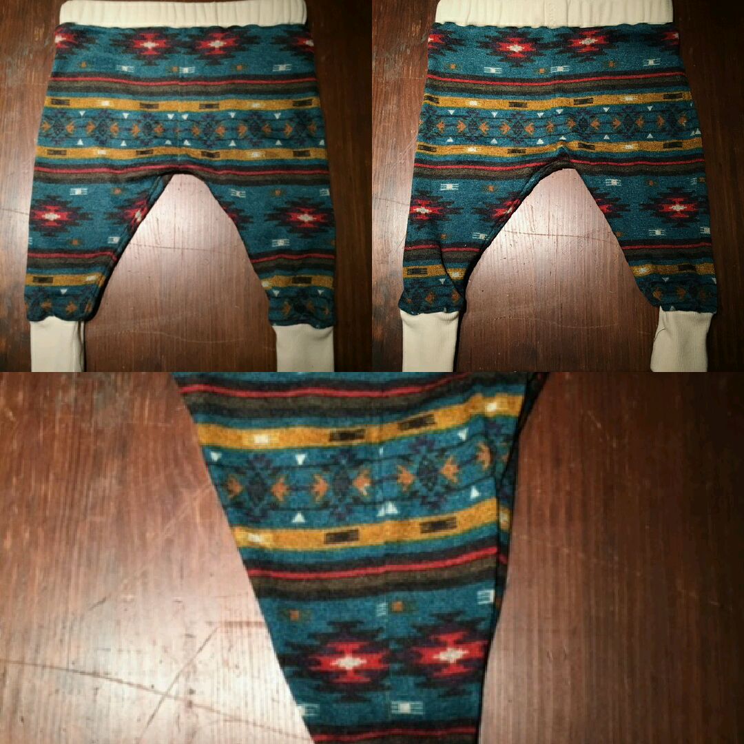 Soft and beautiful geometric leggings for your little one. Teal leggings with classic off-white waistband and ankle cuff.