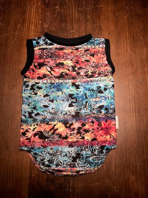 Our classic long crewneck tank in cotton in a print reminiscent of the 90s, with contrast double-knit at the neck and armholes.