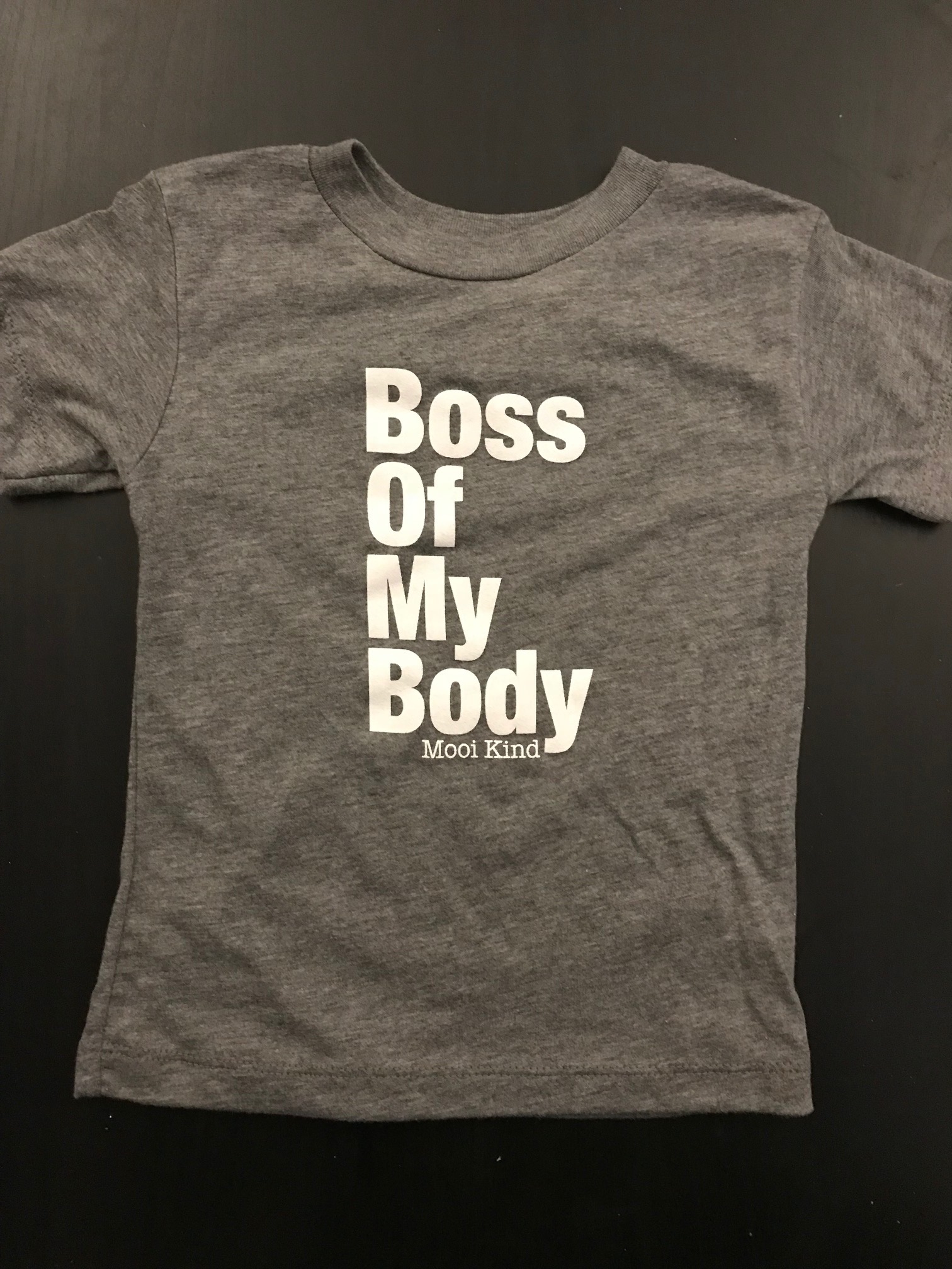 Printed on soft tri-blend cotton, our "Boss of My Body" t-shirts are an empowering message.